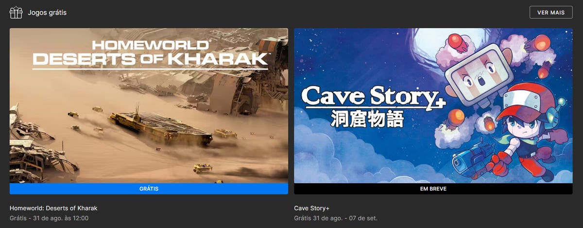 Hoje a Epic Games liberará o jogo gratuito Homeworld: Deserts of Kharak em sua loja, e também, a empresa já revelou que Cave Story+ será o próximo jogo grátis. A informação foi conferida e confirmada pelo nosso portal, conforme imagem abaixo.