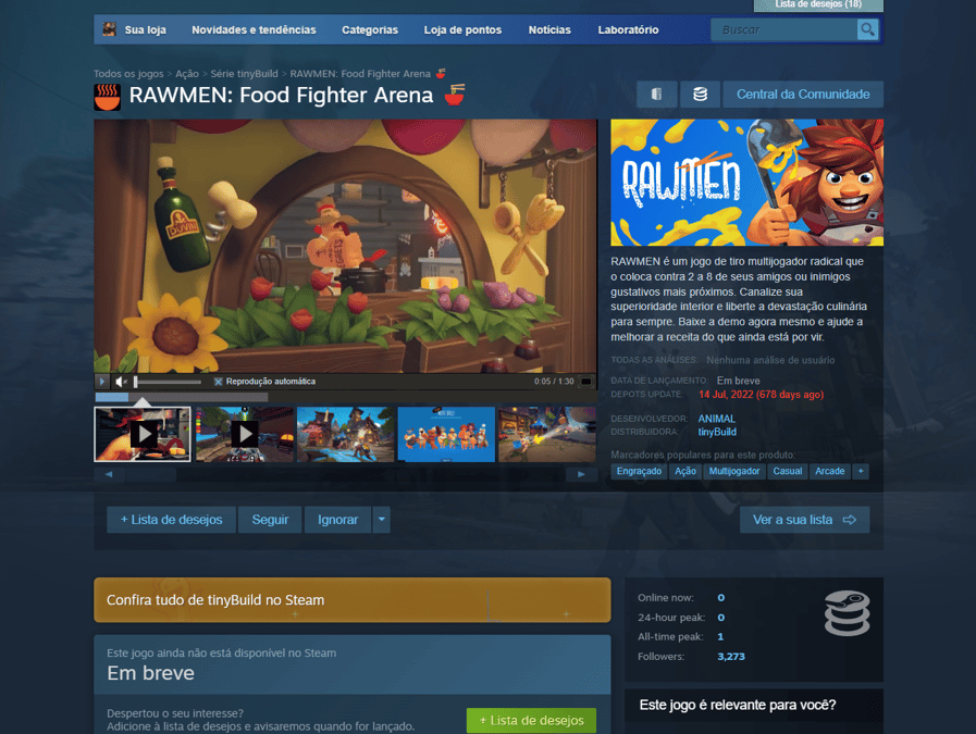 Foi anunciado que o jogo gratuito de arena chamado RAWMEN: Food Fighter Arena, será lançado em 23 de julho para PC e será exclusivo da Epic Games Store, e o engraçado é que esse jogo gratuito possui uma página no Steam, que não é atualizada à 678 dias.