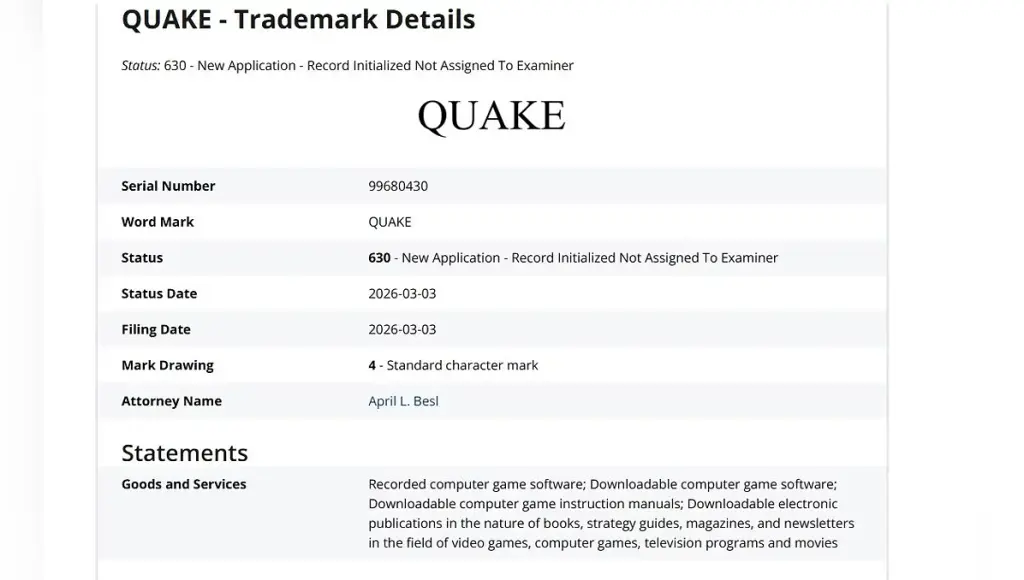A internet notou que a ZeniMax entrou com um pedido de registro de nova marca para “Quake” em 3 de março. Simplesmente “Quake”. Sem números ou subtítulos, o que sugere um reboot da icônica série.