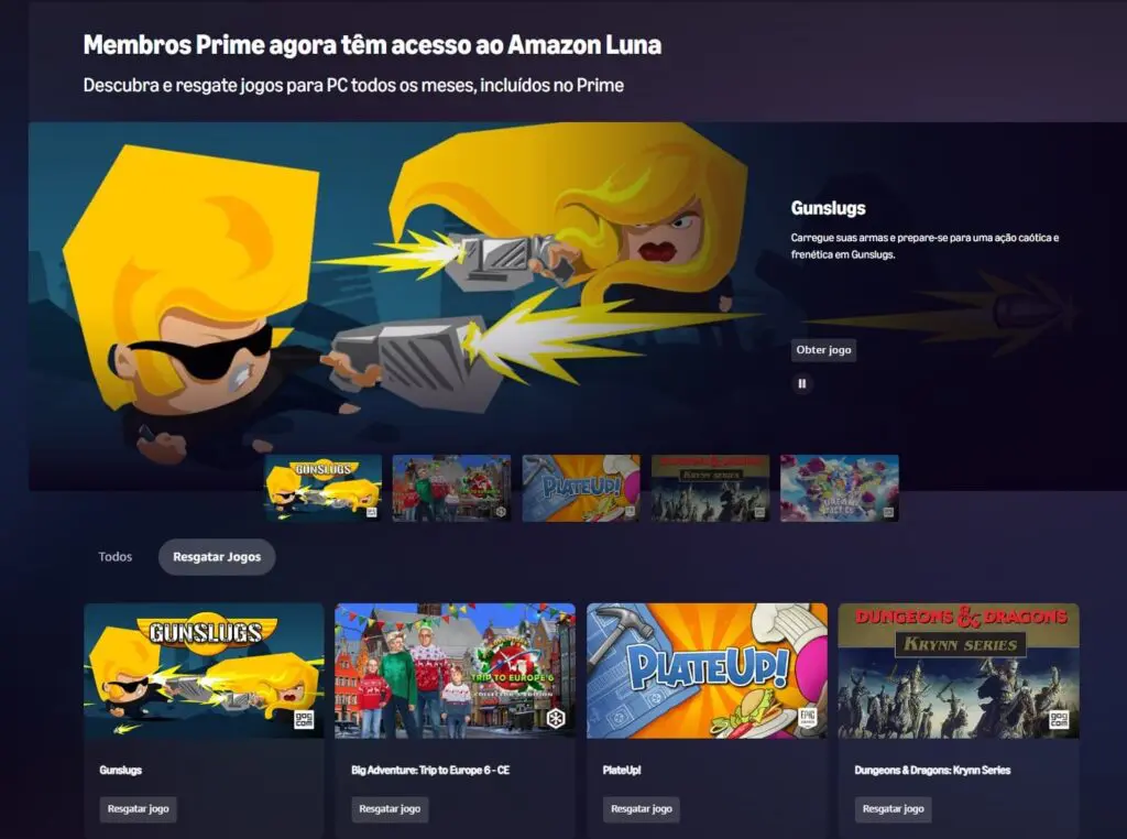 Todos os membros do Amazon Prime podem resgatar de graça os jogos Big Adventure: Trip to Europe 6 Collector’s Edition e Gunslugs no Amazon Luna.