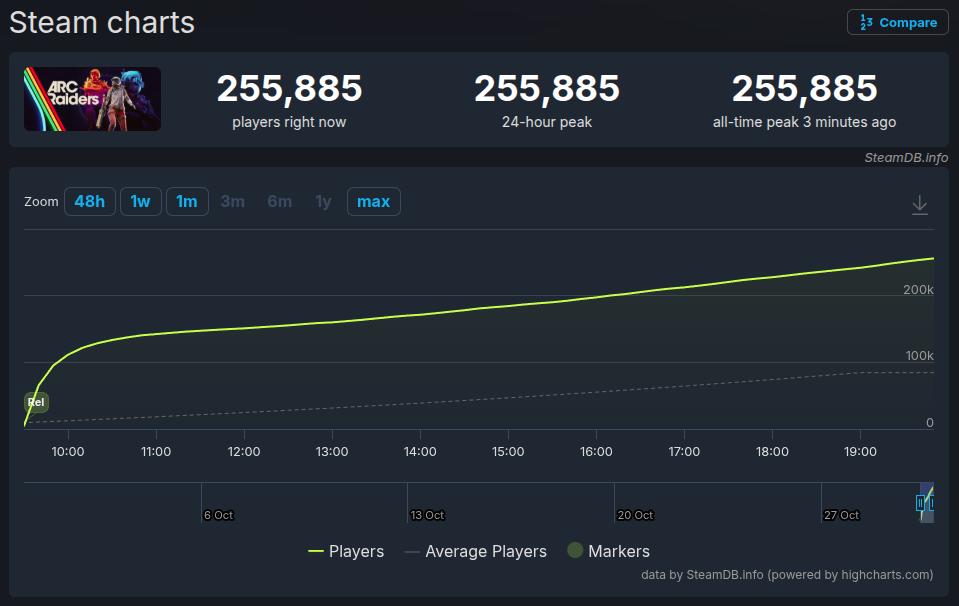 Após anos de expectativa e múltiplos adiamentos, o estúdio sueco Embark Studios, fundado por ex-desenvolvedores de Battlefield, finalmente lançou seu ambicioso jogo de tiro, Arc Raiders. O jogo já está disponível para PC, PlayStation 5 e Xbox Series e, em sua primeira hora, ultrapassou 135.000 jogadores simultâneos (no momento da escrita desta notícia, já passa dos 255.000 e o número continua aumentando), marcando uma estreia impressionante para a nova propriedade intelectual.