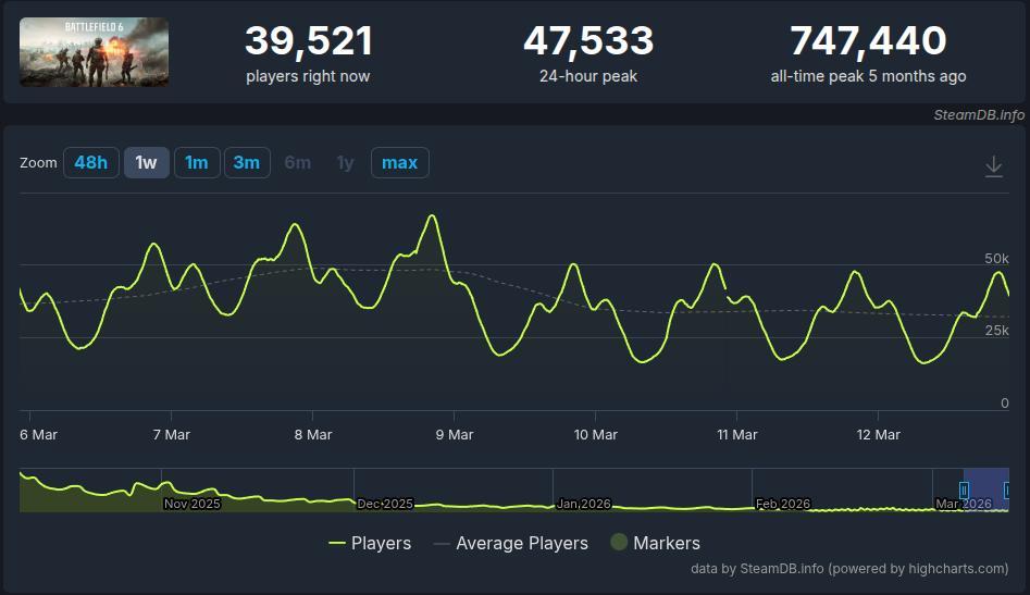 Battlefield 6 está passando por momentos difíceis: o número de jogadores simultâneos, que chegou a centenas de milhares, caiu para 30-40 mil.