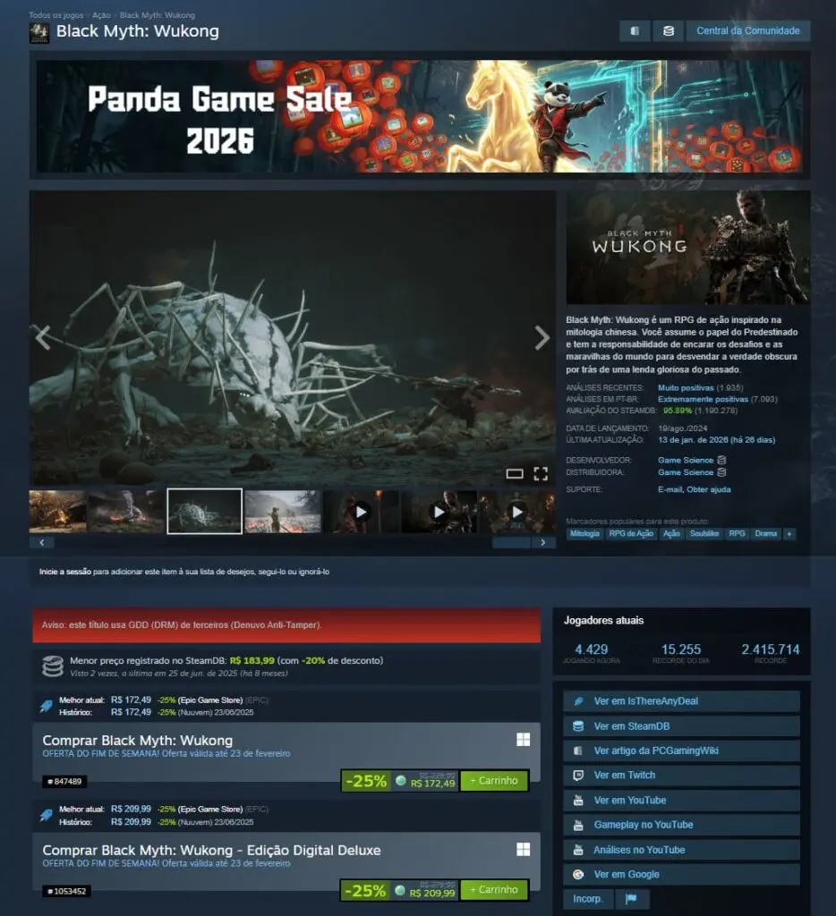 Vale citar que nas últimas promoções, Black Myth: Wukong estava sendo comercializado por R$ 183,99, então essa nova oferta é uma ótima oportunidade para os jogadores.
