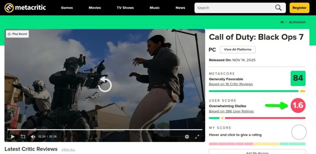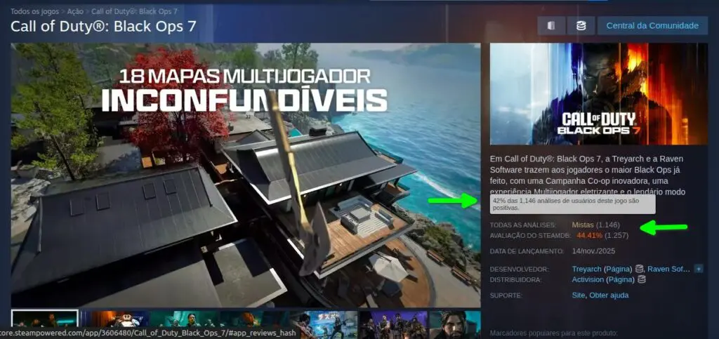 No Metacritic, o jogo já foi inundado de avaliações negativas: no momento da redação deste texto, com 386 avaliações de usuários, sua nota média caiu para 1,6, tornando Black Ops 7 o título Call of Duty com a pior avaliação na história da plataforma. Anteriormente, esse “anti-recorde” era detido por Modern Warfare 3, com uma nota final de 2,3.