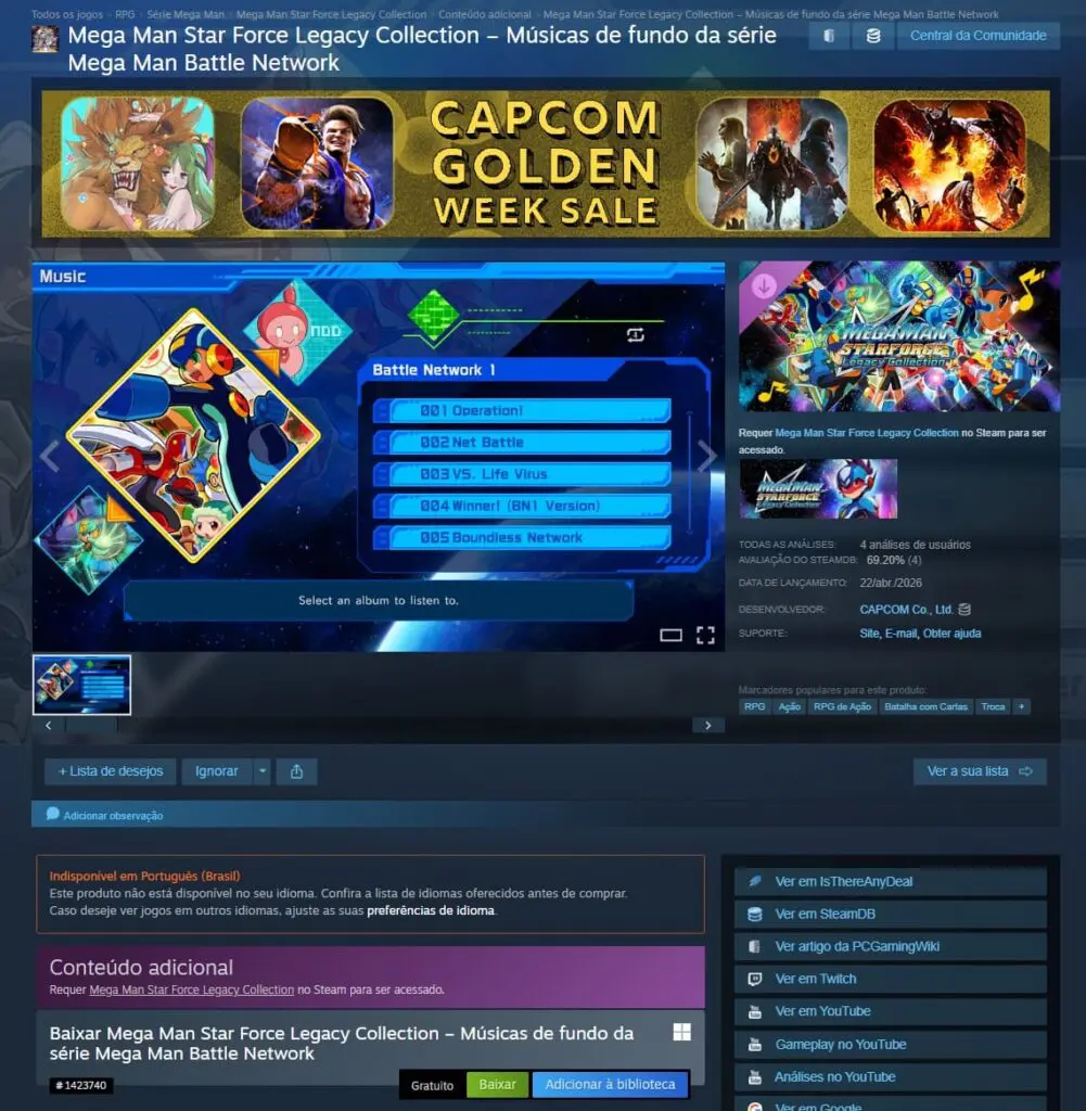 Jogadores que possuem o game Mega Man Star Force Legacy Collection no Steam, já podem resgatar de graça a nova DLC Músicas de fundo da série Mega Man Battle Network.