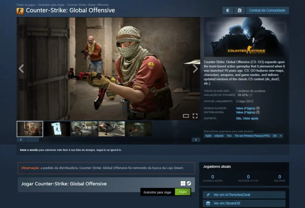 Página de Counter-Strike: Global Offensive no Steam