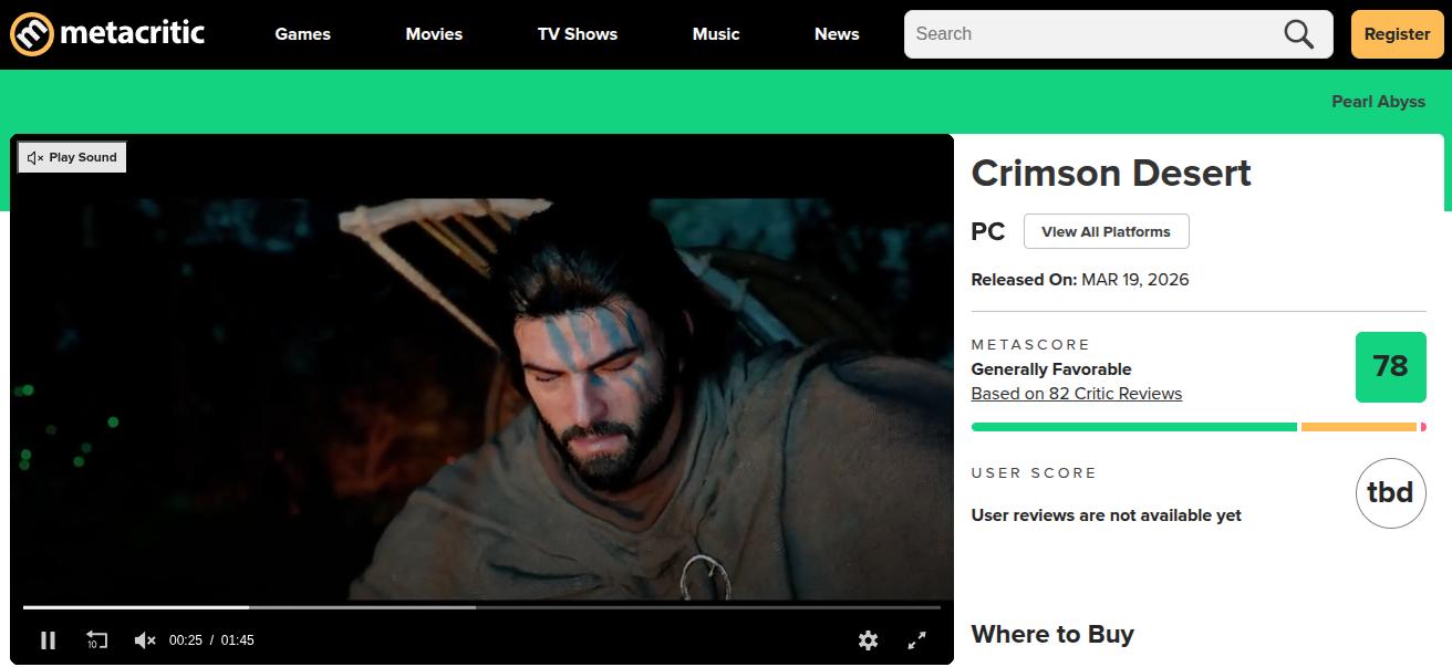 Comparado a outros grandes lançamentos de 2026, Crimson Desert tem um desempenho inferior ao de muitos jogos no Metacritic. Por exemplo, o jogo de terror Reanimal teve uma média de 80 pontos, enquanto Pathologic 3 teve uma média de 79. No entanto, o jogo de ação conseguiu superar Yakuza Kiwami 3 & Dark Ties (74 pontos) e Code Vein 2 (70 pontos).