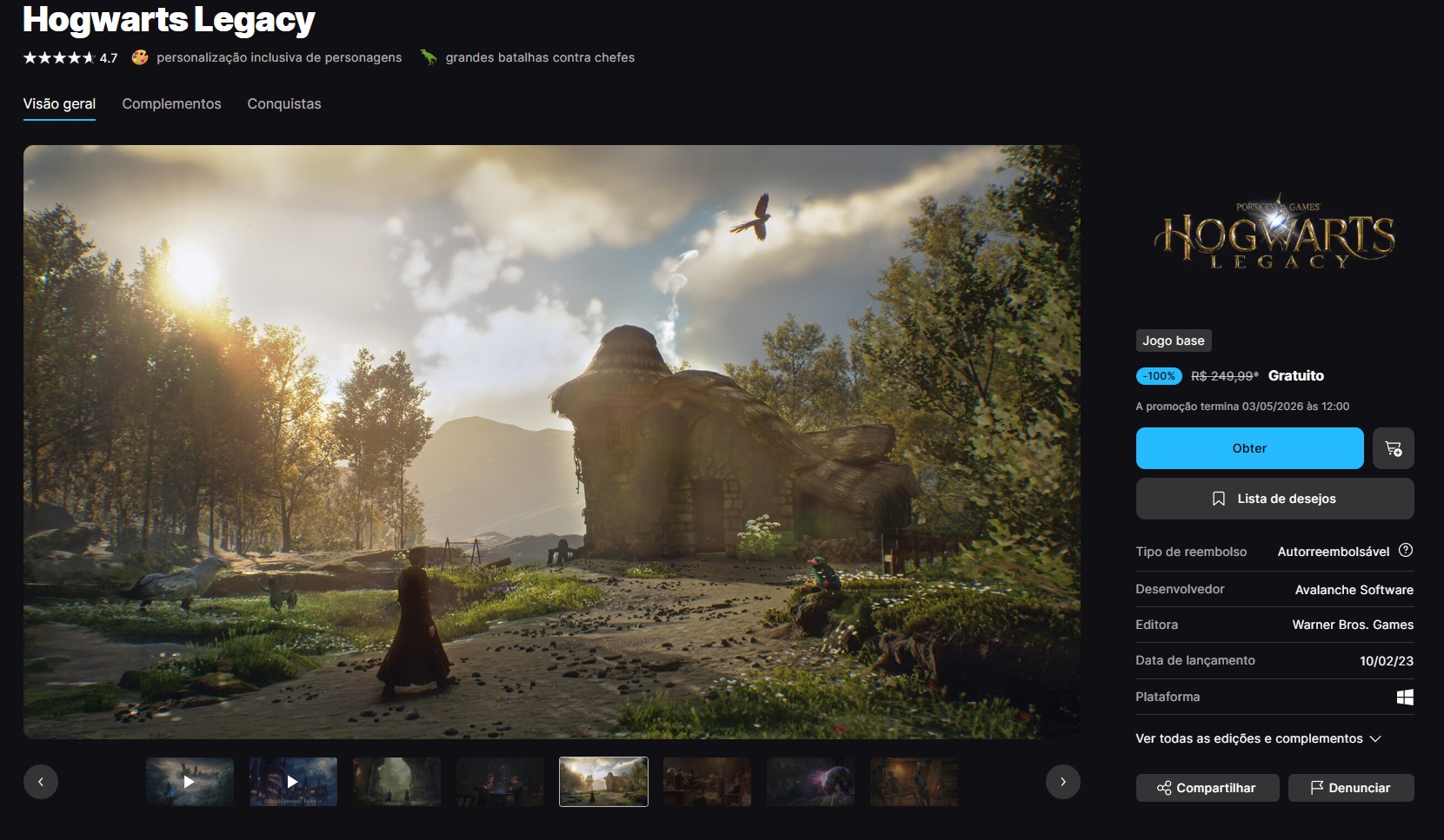 Página de Hogwarts Legacy na Epic Games Store