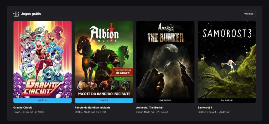 Porém, no momento em que esse artigo for ao ar, jogadores do Brasil podem resgatar apenas o jogo Samorost 3, já que Amnesia: The Bunker por algum motivo, está bloqueado na versão brasileira da loja da Epic Games.