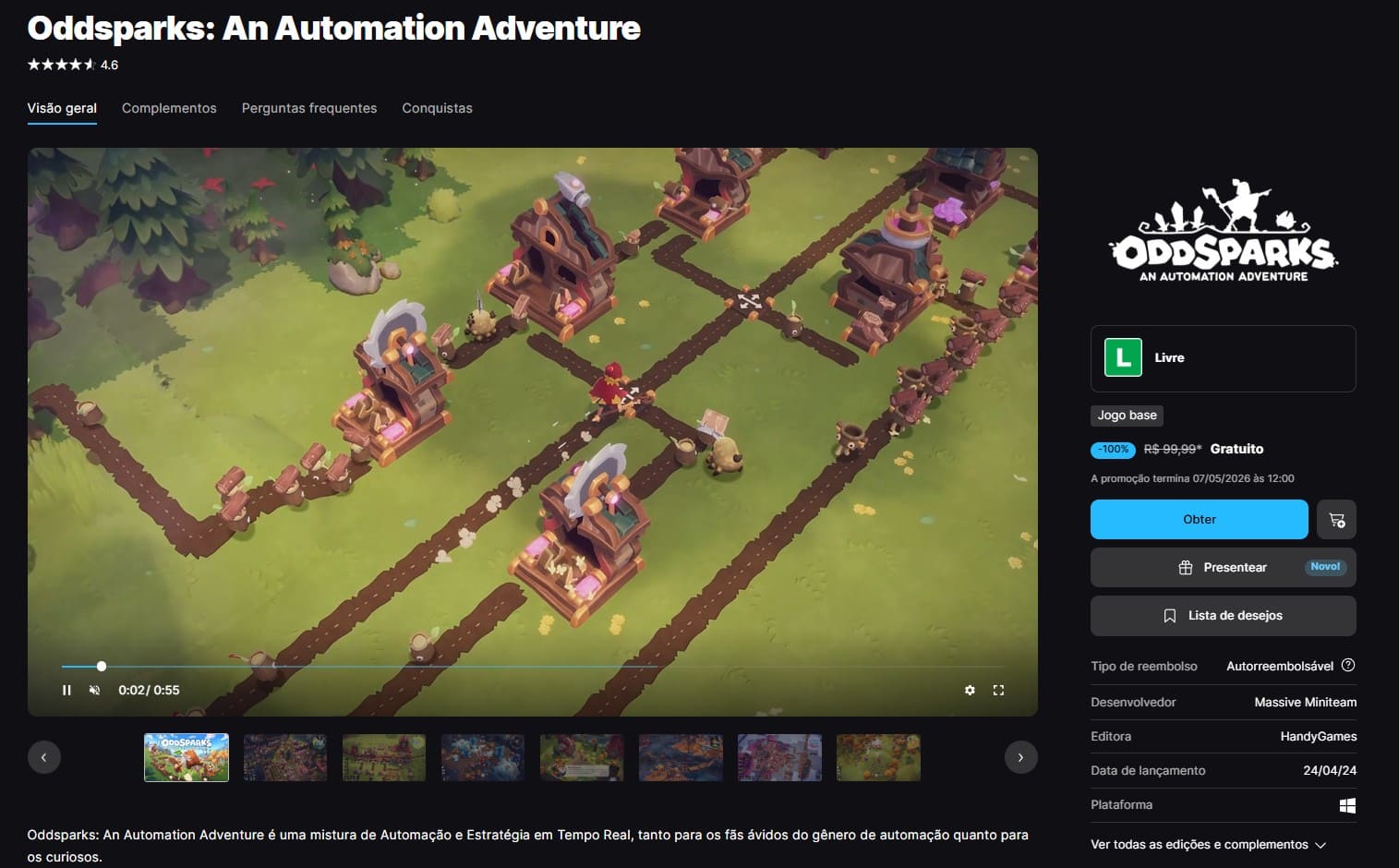 Página de Oddsparks: An Automation Adventure na Epic
