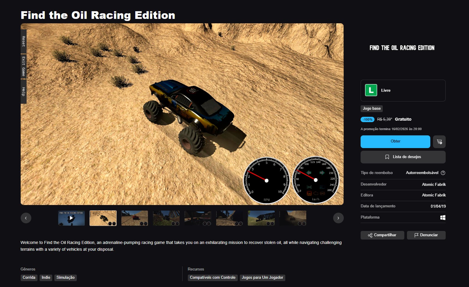 Página de Find the Oil Racing Edition na Epic