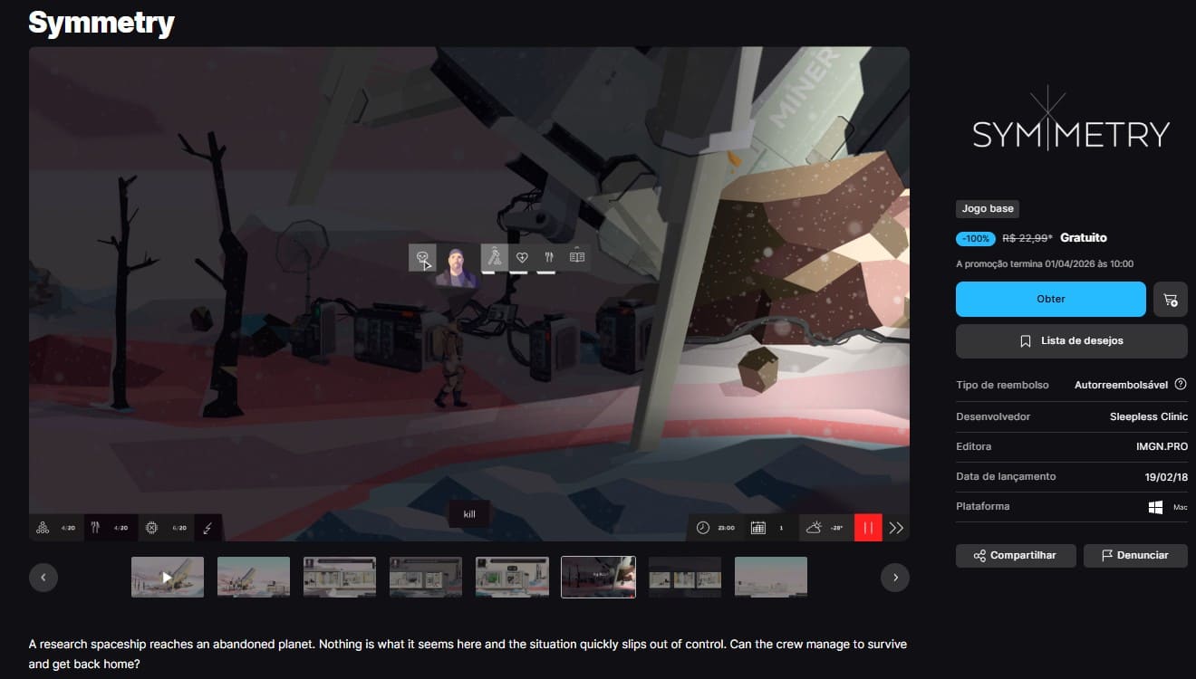O jogo grátis ficará disponível para resgate permanente por quase uma semana, e ao adicionar o game em sua conta, ele ficará para sempre registrado na sua biblioteca.