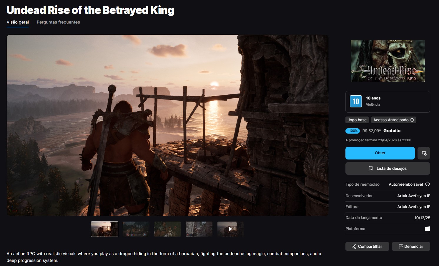 Página de Undead Rise of the Betrayed King na Epic