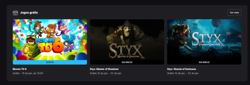 O atual jogo grátis oferecido pela loja é Bloons TD 6, que já está disponível para resgate. Confira aqui todos os jogos grátis entregues pela Epic ao longo dos anos.