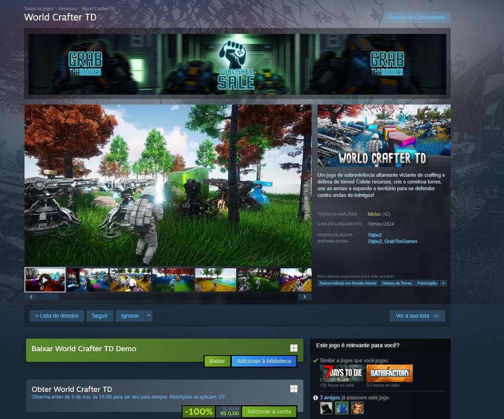 Antes de virar grátis World Crafter TD custava R$ 46.99 no Steam, porém, você precisa resgatar esse jogo até 5 de março, as 15hr para ficar com ele para sempre.