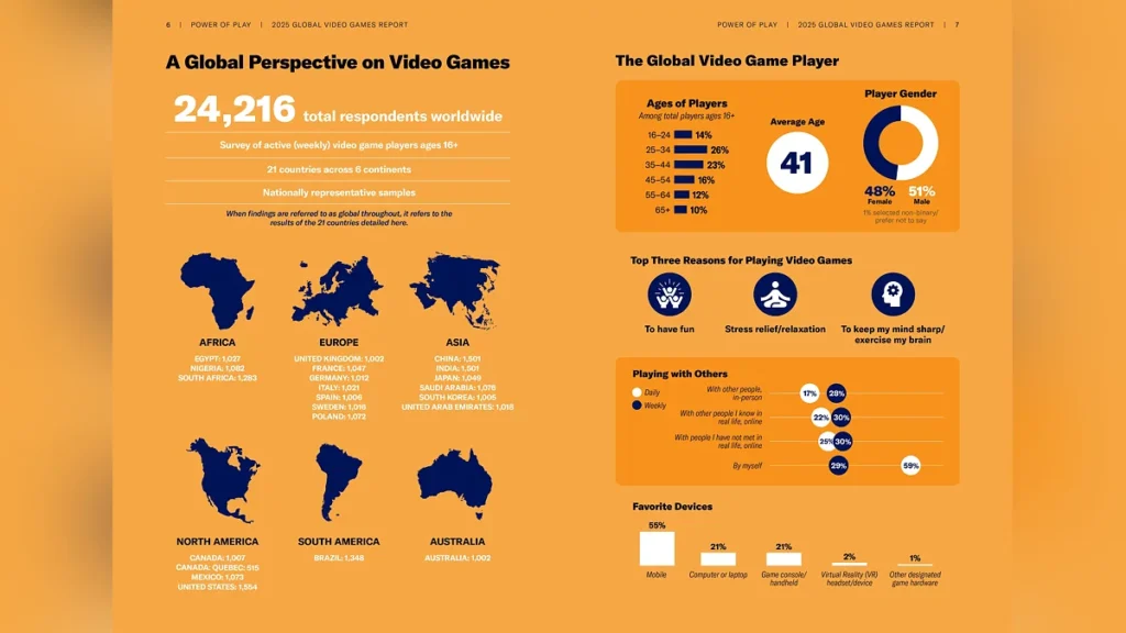 O relatório global Power of Play 2025 da Entertainment Software Association (ESA) foi divulgado, entrevistando mais de 24.000 jogadores ativos de mais de vinte países em seis continentes.