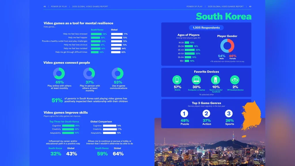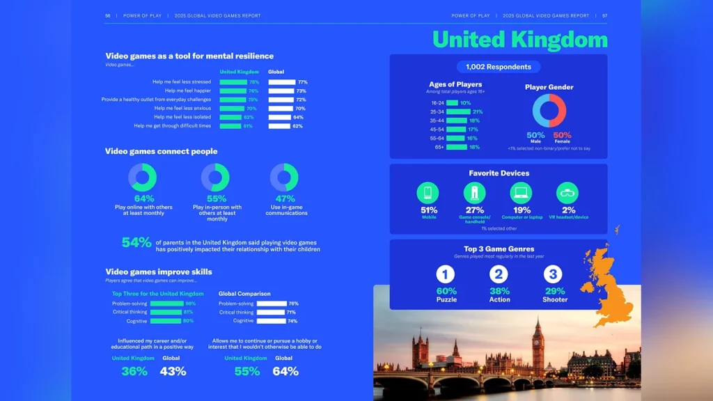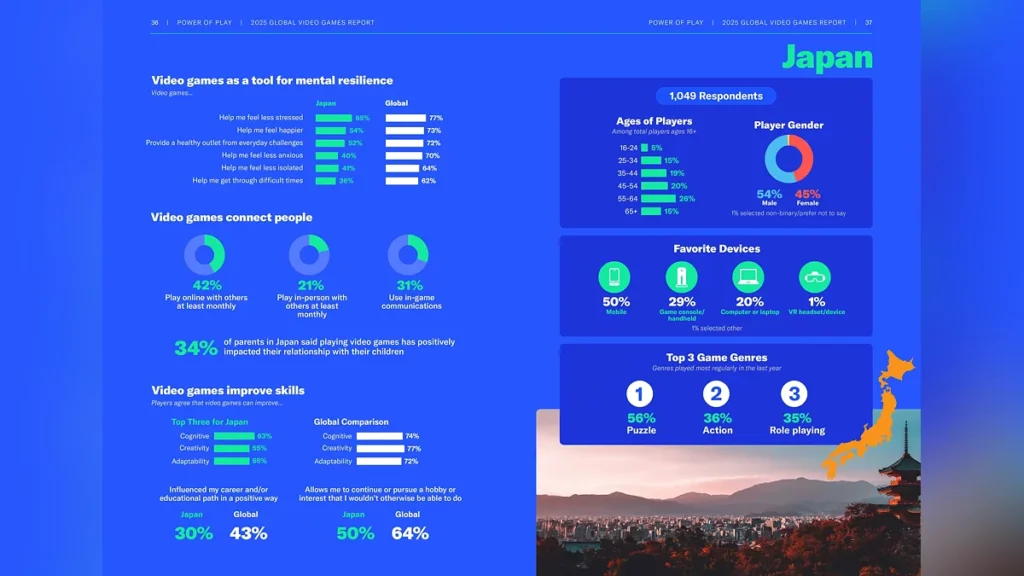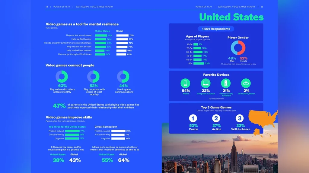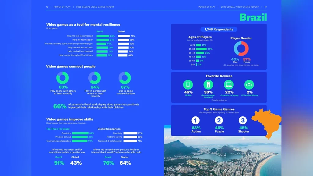 O relatório global Power of Play 2025 da Entertainment Software Association (ESA) foi divulgado, entrevistando mais de 24.000 jogadores ativos de mais de vinte países em seis continentes.