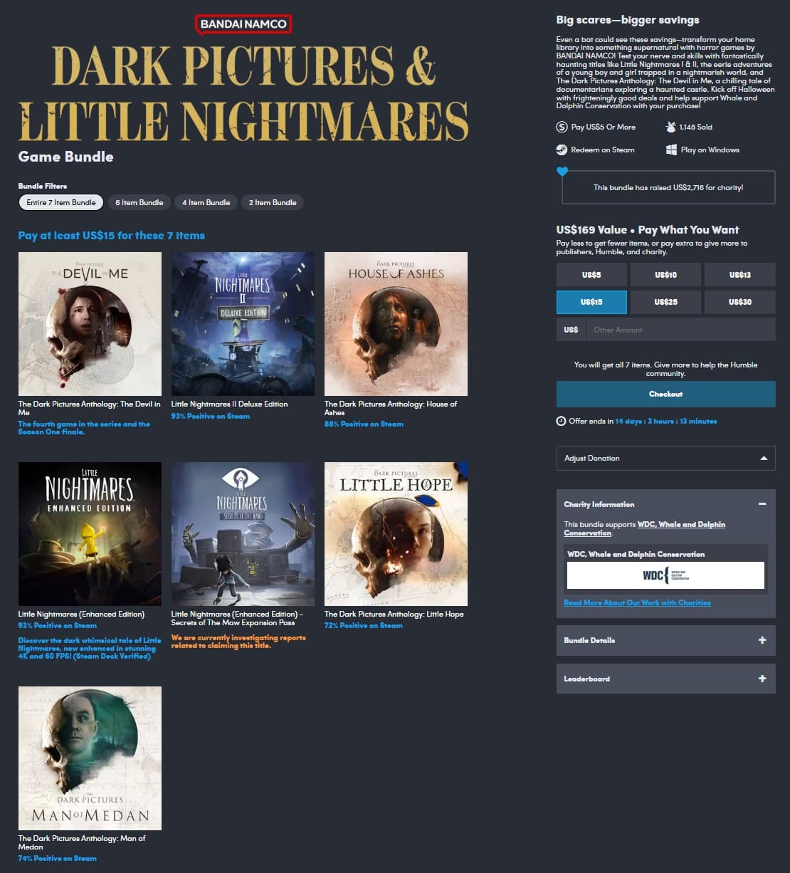 O pacote chamado de Humble Dark Pictures & Little Nightmares Bundle entrega jogos como The Dark Pictures Anthology: The Devil in Me, Little Nightmares II Deluxe Edition e mais, e os jogos são separados em quatro categorias. O pacote ficará ativo até 4 de Novembro.