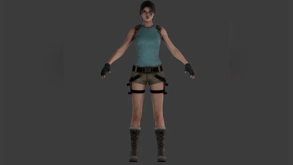 As imagens mostram renderizações iniciais e um modelo de Lara Croft.