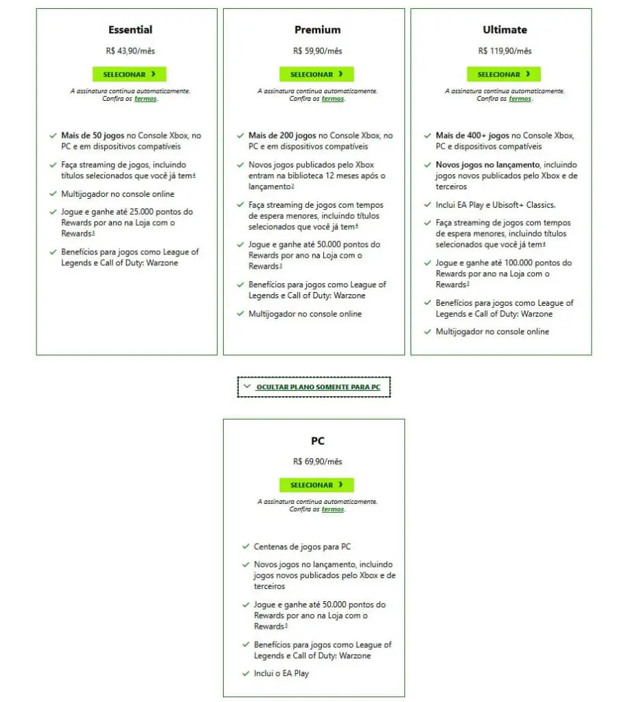 Para continuar jogando jogos no Day One, assim que eles forem lançados, jogadores precisarão possuir uma assinatura do plano Ultimate por R$ 119,90 por mês, ou do PC por R$ 69,90 mensal.