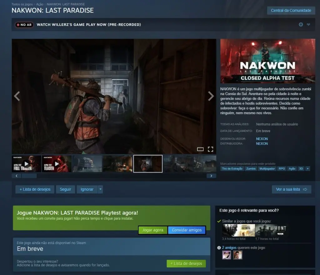 Para conseguir jogar o game de graça, basta acessar a página de Nakwon: Last Paradise no Steam e clicar no botão “Jogar agora”. Vale citar que por mais que seja possível realizar o download do game, a Nexon, estúdio responsável pelo game, está liberando o acesso aos poucos.