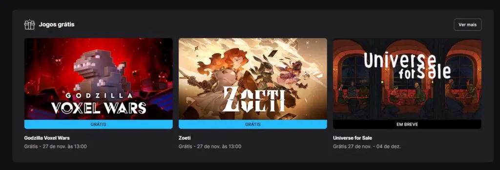 Godzilla Voxel Wars e Zoeti são os atuais jogos grátis grátis da Epic Games Store.