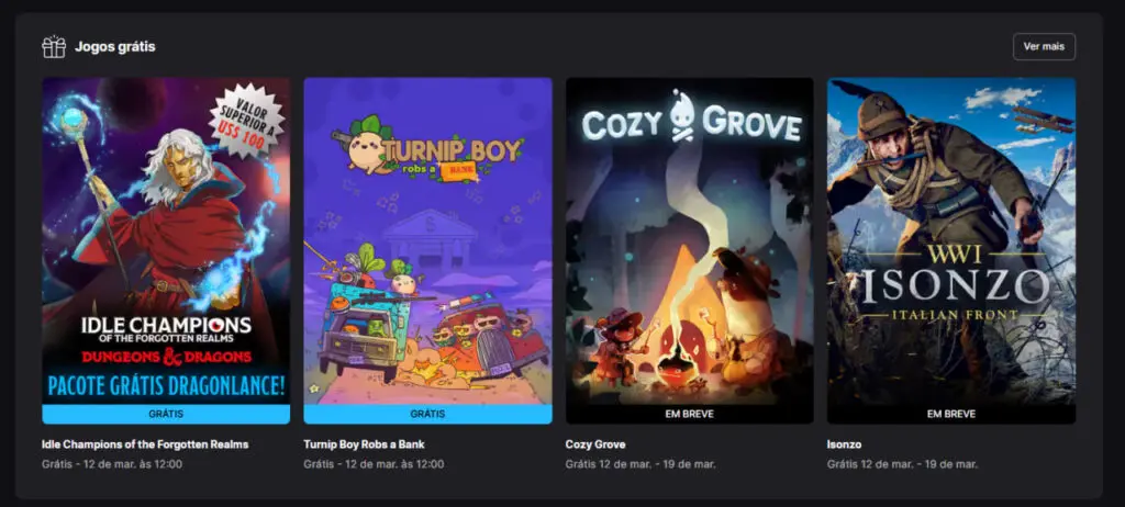 Os atuais jogos grátis da Epic Games Store são Turnip Boy Robs a Bank e conteúdos para Idle Champions of the Forgotten Realms.