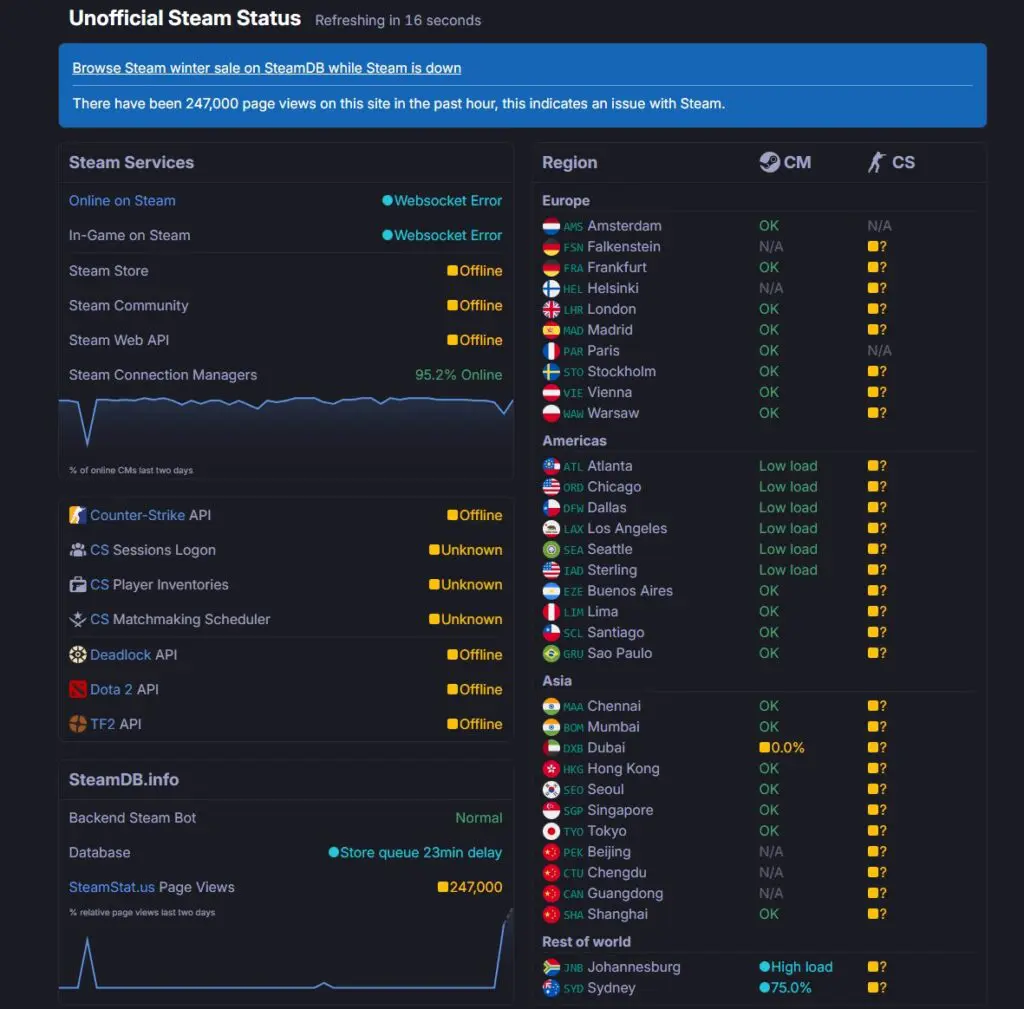 Na tarde dessa quarta-feira, véspera de Natal, o sistema inteiro do Steam está sendo afetado por uma grande instabilidade, que está deixando vários serviços da Valve fora do ar.