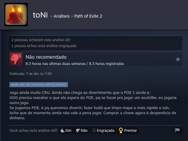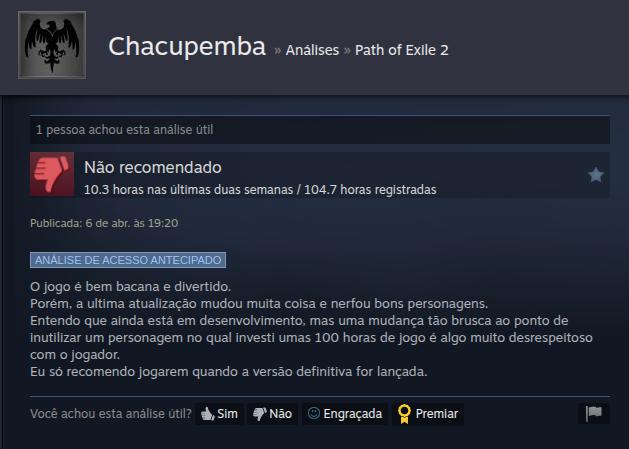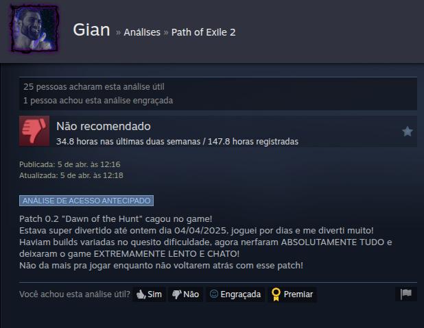 No momento em que escrevo, as análises recentes no Steam caíram para “neutras”, com o jogo tendo apenas 44% de avaliações positivas nos últimos 30 dias.