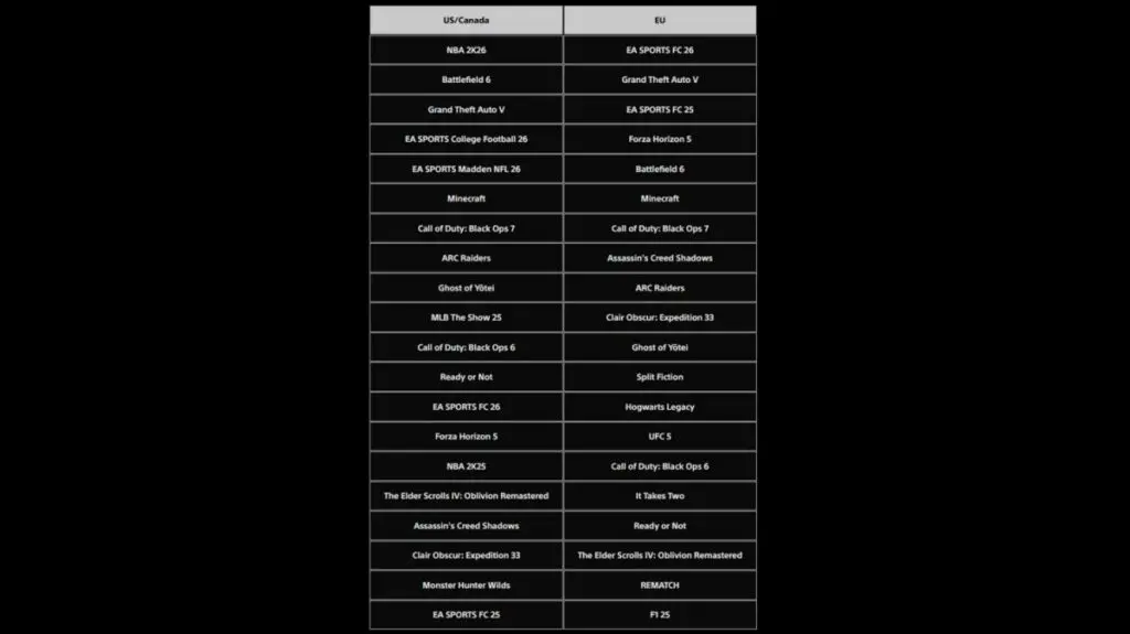 De acordo com os relatórios anuais da Sony, Battlefield 6 ultrapassou Black Ops 7 no mercado americano, enquanto na Europa, jogos como Forza Horizon 5 e EA Sports FC 25 estavam em alta demanda.
