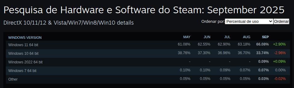 O suporte oficial para o Windows 10 terminará em 14 de outubro e, com a data a poucos dias de distância, os usuários estão migrando rapidamente para o Windows 11. Em setembro, o sistema operacional Windows 11 estava em 66,08%, ganhando um sólido aumento de 2,90% em comparação a agosto.