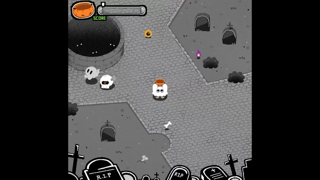 Um jogo 2D simples com visão de cima para baixo, onde você controla um fantasminha que coleta doces enquanto evita inimigos que surgem. Página no Steam.