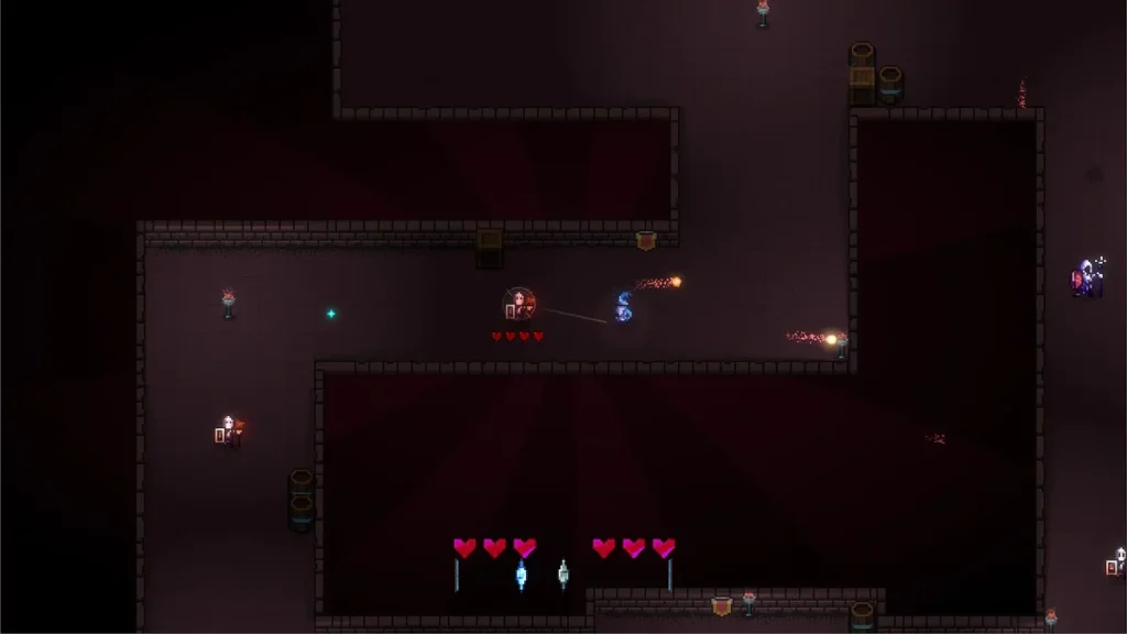 Melodic Mage é um jogo de tiro rítmico com visão superior e gráficos pixelados, onde você controla um mago que precisa desviar de ataques e derrotar inimigos. Página no Steam.