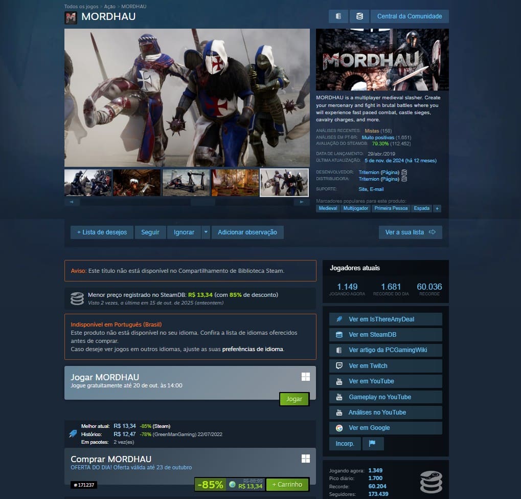 Note que a gratuidade de Mordhau não é permanente, e após o dia 20 de outubro todos perdem o acesso ao jogo gratuito.