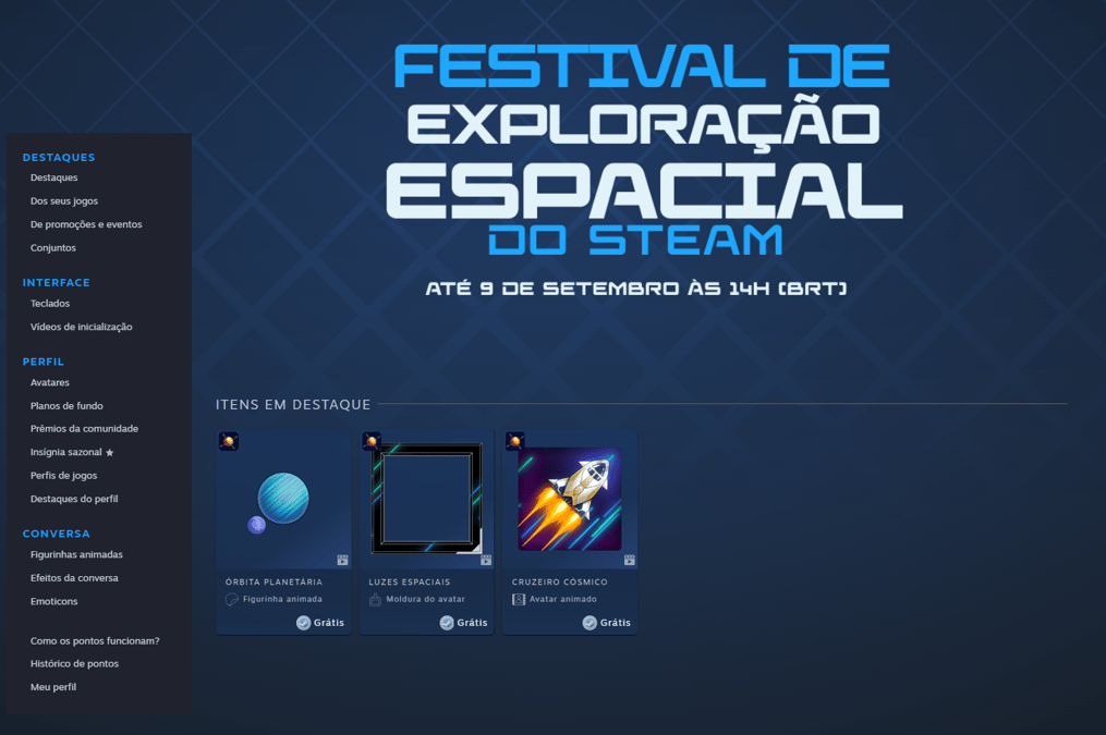 E até o dia 9, todos podem resgatar alguns itens gratuitos na loja de pontos da Steam, que incluem uma uma moldura de avatar, um avatar animado para o seu perfil e ainda uma figurinha animada.