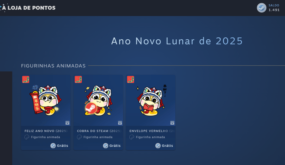 Estamos na semana do ano novo lunar, e para comemorar, todos podem resgatar de graça alguns itens na loja de pontos da Steam.