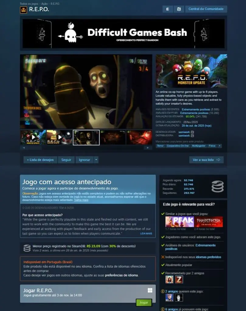 Página de R.E.P.O no Steam