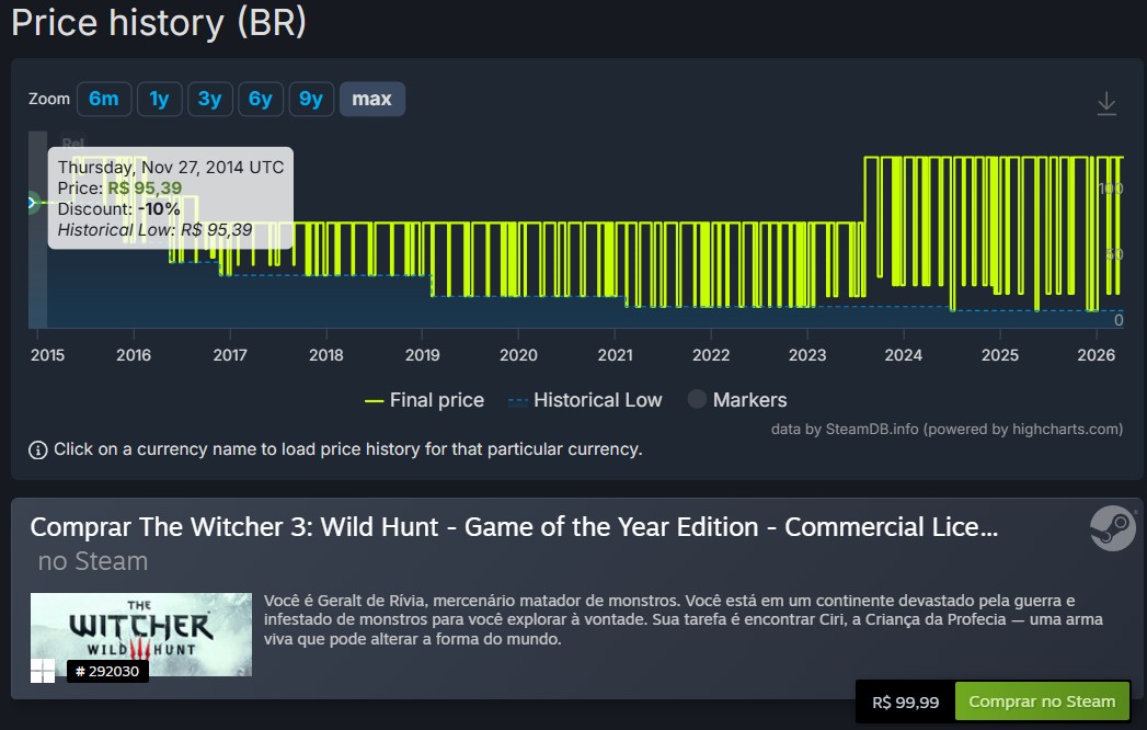 Mesmo com essa adição, o SteamDB, uma ferramenta criada pela comunidade, já monitora o preço de todos os produtos listados no Steam, mostrando o valor de um jogo desde o seu lançamento.