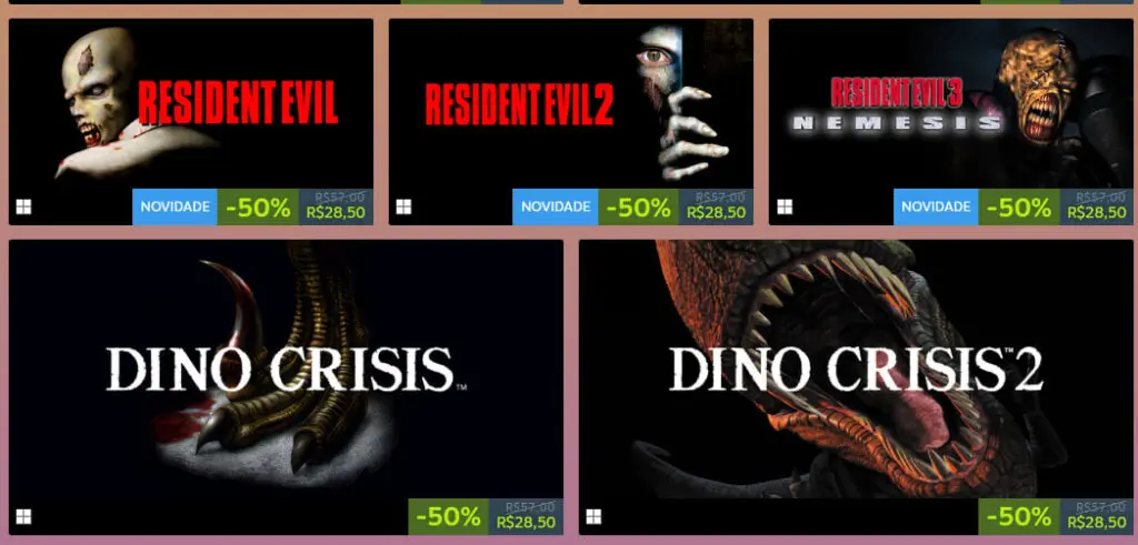 Os três jogos clássicos da série de Resident Evil chegam ao Steam pelo valor promocional de R$ 28,50 cada, e os três jogos possuem o DRM Enigma.