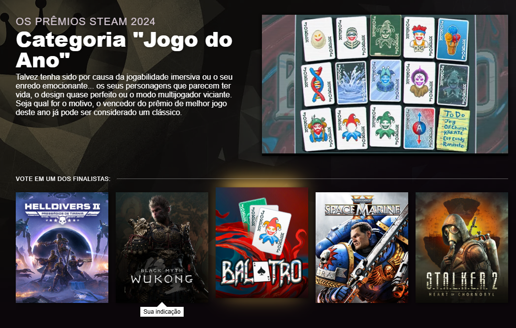 Todo ano a Steam realiza o The Steam Awards, um evento em que os jogadores podem votar nos melhores jogos do ano na plataforma.